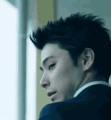 Nijiro Murakami looks back over his shoulder with a serious expression, wearing a suit jacket.