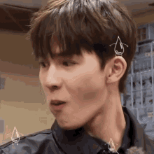 Ninepercent's Zhuzhengting reacts with animated water drops on his face, looking surprised or nervous.