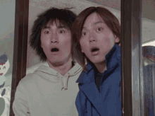 Two characters from Ninpu Sentai Hurricaneger look shocked and surprised.