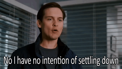 Tobey Maguire as Peter Parker declares he has no intention of settling down in a memorable Spiderman 3 scene.