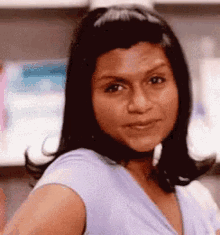 Close-up of Mindy Kaling, known for The Office, looking at the camera with a slight smile.