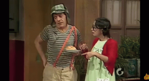 El Chavo and La Chilindrina from El Chavo del 8 interacting with food, with La Chilindrina taking a bite.