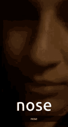 A close-up view of a person's nose, with the word "nose" displayed on the screen.