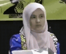Nurul Izzah Nurul Izah, a woman in a hijab, sitting at a table with a 'HISHAM' sign behind her.