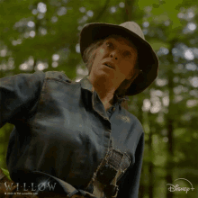 Hannah Waddingham as Hubert, wearing a cowboy hat, reacts with 'Oh' in a scene from Willow.