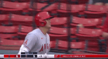 Shohei Ohtani, wearing an Angels uniform, celebrates on the field after a play in a baseball game.