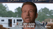Dallas Roberts as Bob Armstrong exclaims 'Oh My God She's Here' in a scene from the series Insatiable.