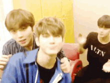 Ong Seongwu and Park Jihoon of Wanna One share a cute moment, making finger hearts for the camera.