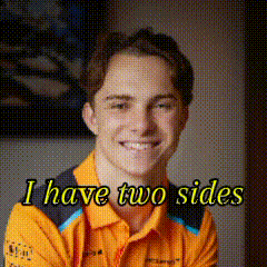 Oscar Piastri and Max Verstappen showcase their 'two sides' in this meme, transitioning from a smiling Oscar to a serious Max.