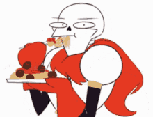 Papyrus from Undertale comically eating a large plate of spaghetti with meatballs.