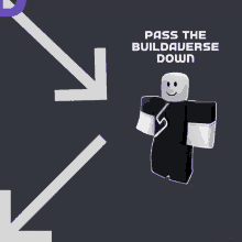 Robby from Buildaverse with arrows, encouraging to 'Pass The Buildaverse Down'.