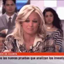 Patricia Alcaraz in a plaid shirt, sitting on a TV show set, discussing new evidence with investigators.