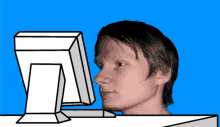 Tehhankie reacts to a computer screen with a blue background, perfect for a meme.