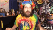 Man with beard and tie-dye shirt making peace signs, wearing a colorful cap in his Pcc2 vlog.