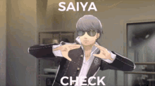 Yu Narukami from Persona 4 dancing with sunglasses, performing a 'Saiyan Check' move.
