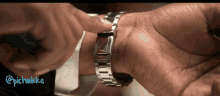 Close-up of Pawan Kalyan's wrist, featuring a watch, possibly related to 'Pichukka' or 'Vakeel Saab'.