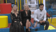 Pierpaolo Pretelli, Maria Teresa Ruta, and Stefania Orlando smiling on the set of Grande Fratello Vip.