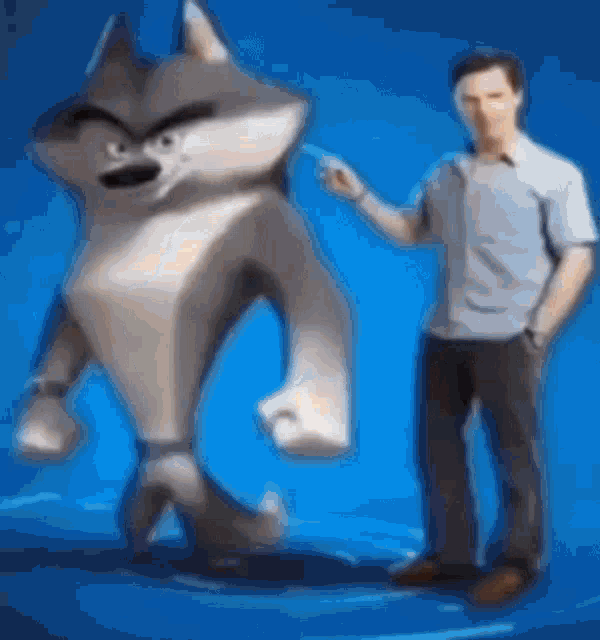 Benedict Cumberbatch poses with Classified and Skipper from Penguins of Madagascar.