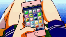 Anime Girl Using Pinterest App on Pink Phone