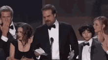 Winona Ryder's expressive reaction at an awards show, with pizza slices edited onto her and others.