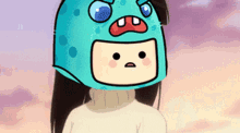 Plankie, the cartoon girl from Planktoons4life, wearing a blue helmet with a face on it.