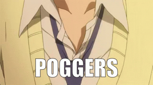An anime scene featuring a hand gripping a collar, followed by a kiss, with the text 'POGGERS' overlaid.
