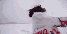 Polina Favorskaya spins playfully in the snow, wearing a white fur coat and yellow jacket.
