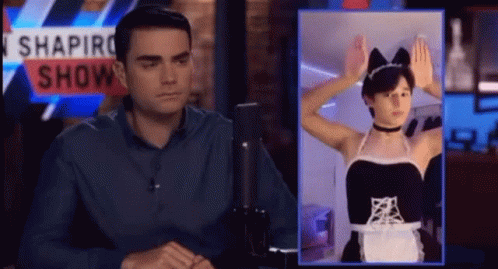 Ben Shapiro reacts to a video of a person dressed as a femboy in a maid costume with cat ears.