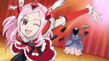 Cure Passion from Precure All Stars strikes an energetic pose, winking with a vibrant smile.