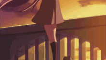 Tsukikage Yuri from Heartcatch Precure stands on a balcony with her long hair flowing in the wind at sunset.