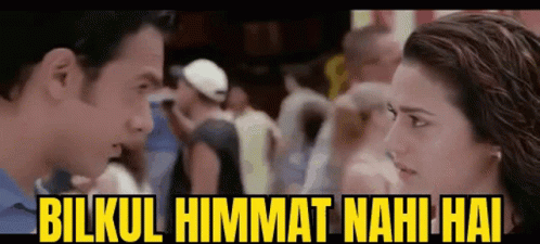 Aamir Khan and Preity Zinta share an intense moment, with the caption 'Bilkul Himmat Nahi Hai' displayed.