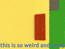 Mizzlebip from Psycholonials in a pixel animation with a door and 'this is so weird and crazy' text.
