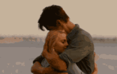 A man and woman share a tender, pure hug, embracing each other closely in a moment of affection.