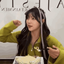 Purplebeck's Yeowool happily eats cake with a fork and does a celebratory dance.