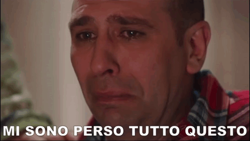 Italian comedian Checco Zalone cries emotionally with the caption 'I MISSED ALL OF THIS' from his film Quo Vado.