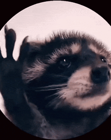 A cute raccoon in a close-up shot appears to be dancing or 'raving' with its paws.