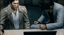 A man in a suit gets mad, slams his fist on a table, and then walks out, slamming the door behind him.