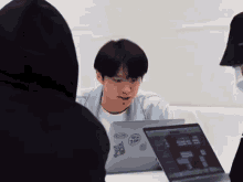 Kono Junki from JO1 plays Wordle on his laptop, reacting with surprise and joy after guessing the word 'Genius'.