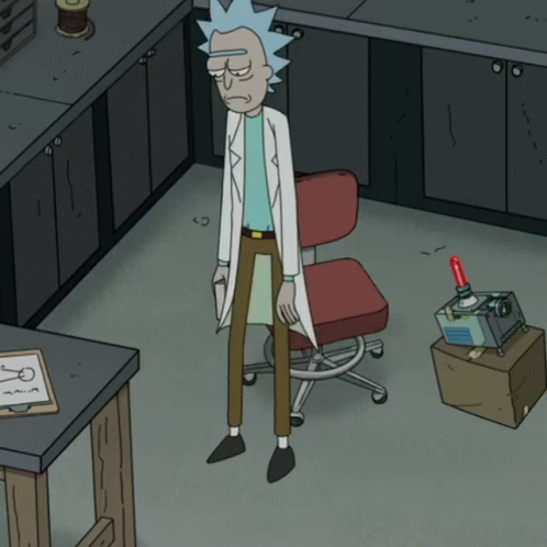 Rick from Rick And Morty sits alone and sad in his lab, looking dejected.