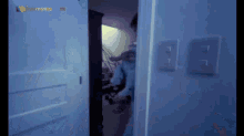 Rico Yan, a Filipino actor, looks stressed while holding a crying baby and a bottle in a dimly lit room.
