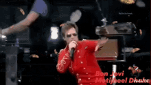 Rifat Arifin performs live as Bon Jovi Motijheel, singing into a microphone in a red jacket.