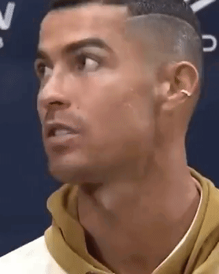 Cristiano Ronaldo makes a funny face with a piercing in his ear, showing an expressive reaction.