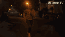 Esme Creed Miles as Hanna runs intensely down a dark street at night, featured in #HannaTV.