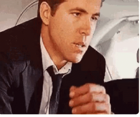Ryan Reynolds in a suit and tie performs a classic facepalm gesture, expressing exasperation or disbelief.