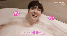 Ryeowook 령구 enjoys a happy bubble bath, smiling brightly and talking about being alone.