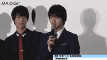 Japanese actor Ryusei Yokohama speaks into a microphone at a movie event, dressed in a suit and tie.
