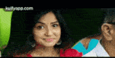 A young woman in a red dress smiles charmingly, interacting with a man in an auto-rickshaw.