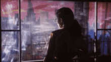 Sade in 'The Sweetest Taboo' music video, looking out a window at a city skyline.