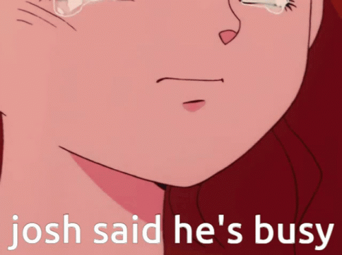 Sailor Moon character Naru cries with tears streaming down her face after Josh said he's busy.
