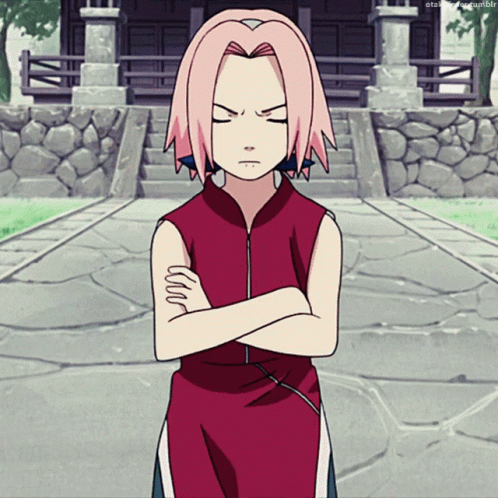 Sakura from Naruto, initially looking annoyed, then transforms into a furious, yelling expression.